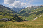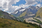Następnie czeka nas dość łagodne wejście na przełęcz Col de Seigne. Widok na dolinę Vallee des Glaciers jest super (tak, nazwa francuska, bo przełęcz stanowi granicę między państwami), ale moim subiektywnym zdaniem nie umywa się do tego z Grand Col Ferret