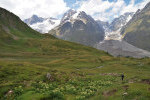 :P Już po pół godziny jak zacząłem schodzić zaczęło się przejaśniać, by po moim zejściu na Plan Praz lodowce ukazały się w pełni xD Rozkoszuję się więc słońcem i postanawiam urządzić sobie piknik na alpejskiej polanie. Jest ślicznie, a zdjęcie treków odczuwam równie wspaniale. Dzięki tym nieplanowanym odpoczynkom spotykam na tresie fascynującego kompana z Węgier. Z zawodu informatyk, z wyboru amator górskich uroków. Wysokiemu stanowisku w jednej z światowych firm IT zawdzięcza prawie nieograniczony urlop. Jeździ więc po całym świecie wędrować sobie po górach. Nie śpieszy mu się. Na TMB jest trzeci raz, tym razem przeznaczył sobie na ten cel 3 tygodnie. Zalicza po drodze wszelkie możliwe trasy odchodzące z TMB, a jak mu się gdzieś spodoba to zostaje dłużej