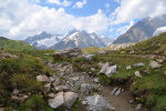 Poranna droga przez podmokłe tereny wokół Lac Combal w kierunku Rifugio Elisabetta była jednym z lepszych momentów na całej trasie. Już sam ukwiecony teren poprzecinany strumieniami stanowi super widok.