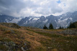 Z powodu dość niezłej pogody (umiarkowane zachmurzenie, dobra temperatura) decyduję się na przejście alternatywnym wariantem TMB - przez przełęcz Col des Fours znajdującą się na wysokości 2665 m n.p.m. (co stanowi najwyżej położony punkt na całej trasie). Tak bowiem doradzają przewodniki - by wybierać tą trasę tylko przy dobrej pogodzie. Jednak w górach jak to w górach - trzeba mieć respekt przed przyrodą i być przygotowanym na każde warunki. Mimo że zaczynam wspinaczkę na przełęcz w słońcu w ciągu niespełna 20min nad głową zaczynają gromadzić mi się chmury