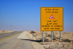 Nasyciliśmy się widokami, no to w drogę. Tuż przy wyjeździe z Sbe Boker na oko 80 letnia pani łapie stopa, jednak po krótkiej rozmowie na migi ustalamy że nie chce jechać w tą stronę co my. Trudno, tym razem nie pomożemy :) Co jakiś czas po drodze (już od Eilatu) mijamy tablice ostrzegające nas przed dzikimi wielbłądami, niestety żadnych nie spotkaliśmy.