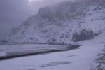 ;) Oto droga której Yaris (po raz pierwszy ale zdecydowanie nie ostatni) nie dał rady. Robi się ciemno, ale Vík czeka tuż obok. Znane jest w sezonie letnim z puffinów, ale w zimie starczy nam widok bazaltowej plaży i pięknych klifów. Jest ciemno, wieje silny wiatr zwiewając tumany śniegu z gór, w dodatku zaczyna sypać. Coraz cięższe warunki atmosferyczne zmuszają nas do odwrotu. Autostrada cała pokryta lodem, widoczność jak mocniej zawieje na 2m. Nasz yaris tańczy na lodzie, raz cudem unikamy zderzenia czołowego, po manewrze wymijającym zataczamy bączki, na szczęście nie lądujemy w rowie. Jest -10 ale za kierownicą siedzę cały spocony i rozdygotany. Najcięższą przeprawę mamy na przełęczy Hellisheiði, znanej z trudnych warunków atmosferycznych w zimie. Szkoła przetrwania, ale dojeżdżamy jakoś do domu. Niestety przez cały pobyt nie uda nam się odwiedzić Jökulsárlón, trzeba więc będzie wrócić na Islandię