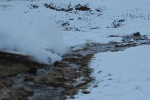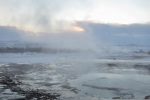 Odpoczęliśmy po locie, czas ruszyć więc w teren! Wstajemy z samego rana, gdy jest jeszcze ciemno – na tej wysokości geograficznej co prawda nie ma jeszcze nocy polarnych ale dzień jest wyjątkowo krótki – trwa tylko 4h! Zwiedzanie przyrody jest więc nie lada wyzwaniem logistycznym. Odpalamy naszego lodowego Yarisa i ruszamy w drogę. A drogi w większości wyglądają tak Pierwszym punktem naszej objazdówki było zobaczenie Geysir'a. Po drodze przejeżdżaliśmy przez Thingvellir – miejsce o znaczeniu symbolicznym (styk dwóch płyt kontynentalnych, najstarszy parlament na świecie), usytuowane nad jeziorem. Ładnie, ale czekamy na więcej! Wracając do gejzerów. Na Islandii spotkacie się wielokrotnie że nazwy naszych obiektów/zjawisk geograficznych pochodzą od islandzkich nazw własnych – tak też jest w przypadku gejzerów. Ten konkretny – Geysir – wybucha na wysokość 70m, niestety rzadko, i nam nie dane było tego zobaczyć. Nie ma co się jednak przejmować bo tuż obok znajduje się Strokkur, który jak w zegarku co kilka minut wyrzuca wodę na na wysokość 15-40m. Zadziwia brak jakichkolwiek barierek czy innych zabezpieczeń – i dobrze, można uchwycić piękne zdjęcia