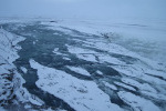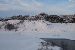 :) Zakopujemy się raz lub 2;) ale wspólnymi siłami 4 osób dajemy radę wypchnąć auto. W końcu drogi tam wyglądały mniej więcej tak No i wreszcie Valahnúkur Point - klify widok z góry na kolejne miejsce aktywności geotermalnej – Gunnuhver Niestety, droga jest fatalna, cały czas stresujemy się czy znów się nie zakopiemy naszym yarisem. Stajemy pomiędzy dylematami – próbować przejechać tą hałdę śniegu czy tamtym lodowo-bazaltowym polem. Wreszcie pada "Dobra, jak się rozpędzisz to przejedziesz!" Nie była to prawda