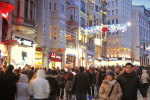 Spacer po Istiklal – pełen życia deptak, dobre miejsce na zjedzenie taniego duruma - za 2TL (tak samo zresztą na Taksimi jest sporo tanich fast foodów) – nie są to miejsca na poznawanie kuchni tureckiej, ale sposób na tanie zapchanie się (polecam również simity, tym razem nie tylko osobom podróżującym budżetowo – za 50 kuruszy otrzymujemy sezamowe niebo w gębie)