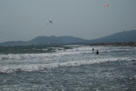 Jest to spowodowane oczywiście dużą ilością materiału rzecznego wpadającego co dzień do morza. Woda nie jest brudna, jest, hmm, mulista? Ciekawe wrażenie, ale nie przekonuje nas do dłuższego plażowania. Rozbijamy namiot w okolicznych krzakach z postanowieniem podróży dalej kolejnego dnia.